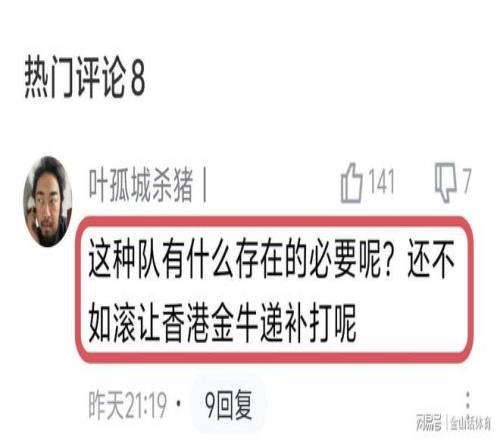 四川队如今糟糕的表现,也引来球迷的纷纷吐槽。“这种队有什么存在的必要呢?还不如滚让香港金牛递补打呢”;“53分?四川之前不是总冠军吗?”;“四川队真可以解散了。输球也可以,分差大也可以,但是怎么分数还没及格呢?”;“四川男篮今年很有可能创cba记录0胜全负战绩,确实没有必要存在了这个球队”。