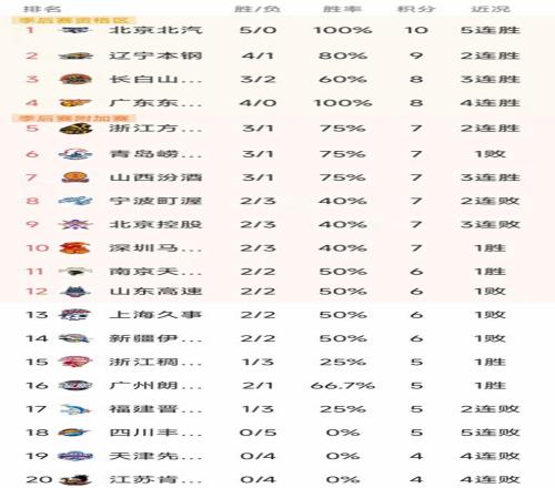 随着广东+北京皆险胜,天津获首胜,CBA最新积分榜:全败仅剩1队