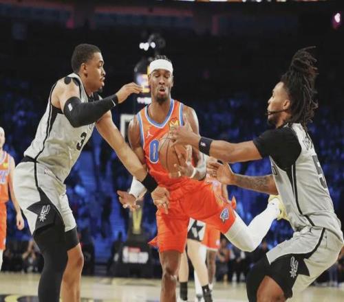 NBA总裁肖华这两天做梦都能笑醒,因为圣安东尼奥马刺队继NBA杯半决赛之后,再次击败了全联盟战绩排名第一的俄克拉荷马雷霆队,这使得今天马刺对阵雷霆的年终大战关注度飞速飙升,高收视率已经手拿把攥,这场本属于开胃菜的比赛没有辜负观众期望,雷霆三杀马刺