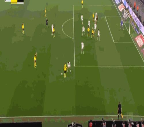 多特在国家德比输给拜仁后,状态还算不错,上周末客场战平弗赖堡连续7轮不败。今天回到主场对阵门兴,多特开场后就很快进入状态,仅仅9分钟,多特中路压上,连续的从中路转移到右侧,再转到中路,再转到右侧,格罗斯禁区边上接球回传,聚勒禁区角上策应斜吊门前,后点无人防守的布兰特小禁区内迎球小角度凌空扫射,皮球 应声入网,多特1:0取得良好开局。