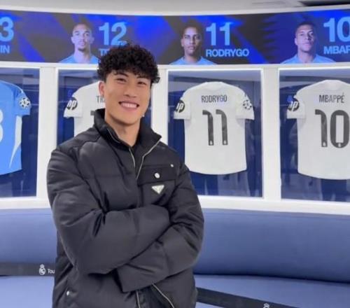 北京时间12月25日深夜,中国男足国脚、山东泰山球员谢文能在社交媒体里分享了他参观西甲豪门皇家马德里主场伯纳乌球场的圣诞休假照。