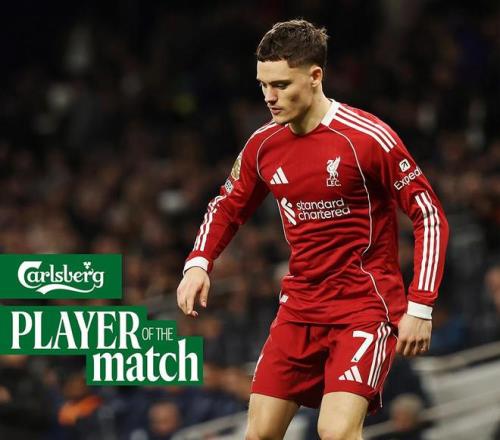 利物浦官方宣布,维尔茨当选球队与热刺一役队内最佳球员。